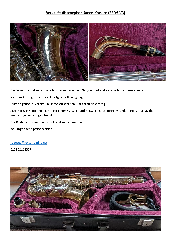 Verkaufe Altsaxophon Amati Kraslice (330 € VB)