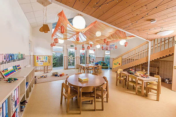 75 Kinder in drei altersgemischten Gruppen, Betreuung von Kindern ab 2 Jahren, Integration