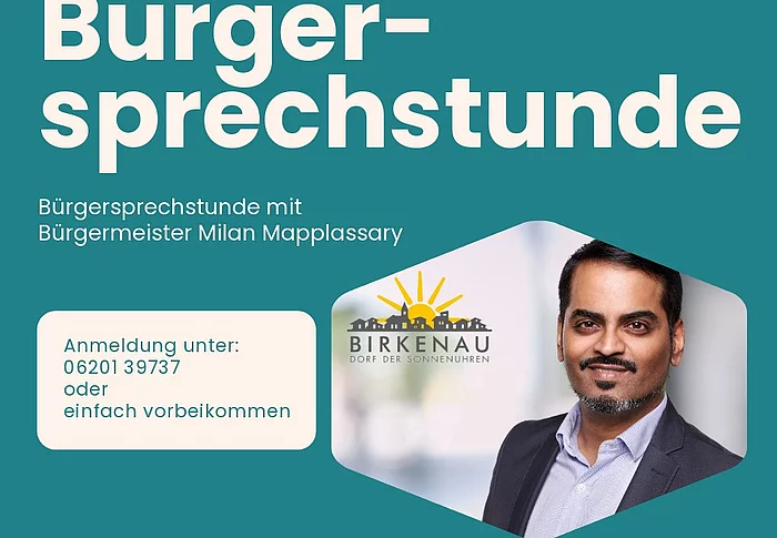 Ab dem 18.09.2025 bietet Bürgermeister Mapplassary eine regelmäßige Bürgersprechstunde an. Diese findet alle zwei Wochen donnerstags von 15:30 bis 17:00 Uhr im Zimmer des Bürgermeisters im 1. Stock des Rathauses statt. Wenn Sie einen barrierefreien Zugang benötigen, melden Sie sich bitte vorab unter u.a. Telefonnummer. Interessierte Bürgerinnen und Bürger können sich telefonisch im Vorstandsbüro unter 06201 / 397-37 anmelden oder einfach vorbeikommen. Bitte beachten Sie, dass es ohne vorab…