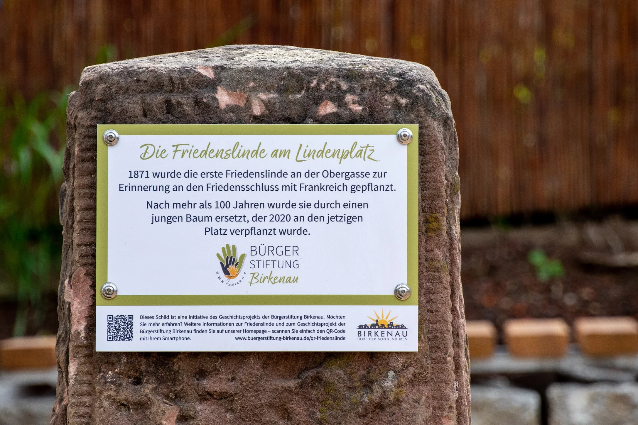 Die Bürgerstiftung hat bereits einige Projekte angestoßen, zum Beispiel das Geschichtsprojekt. Hier werden Landschaftsmerkmale mit geschichtlicher Relevanz und Historische Gebäude in Birkenau durch digitale Möglichkeiten lebendig gemacht. Der Betrachter erfährt auf Schildern an markanten Stellen über QR-Codes ein neues Erlebnis der Nutzung digitaler Techniken. Dieses Projekt lebt und wird stetig weiterentwickelt, so entstehen auch QR-Codes zu interessanten Naturdenkmälern.